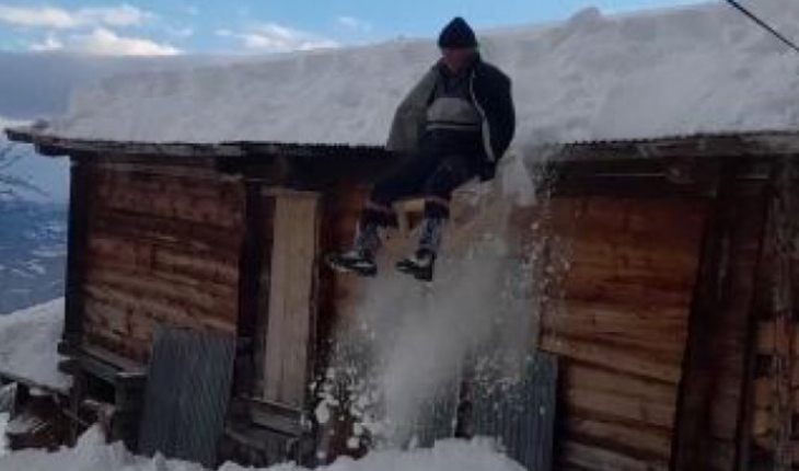 Şavşat ilçesinde tahta kızaklarını alan dede ve torunu evin çatısına çıkarak kaymaya başladı. Birbirini sırayla kayda alan ikilinin renkli görüntüleri görenleri gülümsetti.