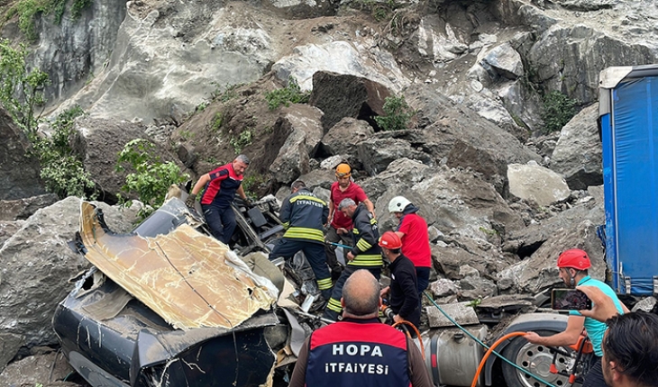 Artvin'in Kemalpaşa ilçesinde, heyelan nedeniyle kaya kütlelerinin tırların üzerine düşmesi sonucu ilk belirlemelere göre 1 kişi öldü, 1 kişi yaralandı.