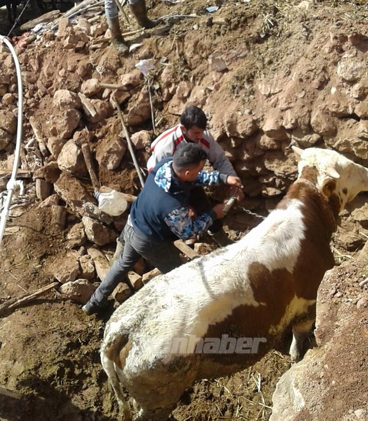 Olay, dün gece saatlerinde ilçeye bağlı Körlü Mahallesinde meydana geldi. Edinilen bilgiye göre, yoğun yağışlar nedeniyle çöken bir ahırda bulunan 10 inekten 1’i telef oldu. Göçük altında kalan hayvanlar Halkapınar Belediyesi ekipleri tarafından başlatılan çalışma sonucu kurtarıldı. Belediye Başkanı Mehmet Bakkal da, olay yerine giderek yerinde incelemelerde bulundu ve kurtarma çalışmalarını takip etti. Başkan Bakkal, ahır sahibine geçmiş olsun temennisinde bulundu.