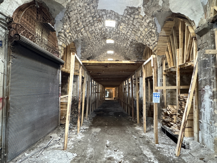 6 Şubat 2023'teki depremlerde ağır hasar gören Tarihi Kapalı Çarşı'da restorasyon çalışmaları devam ediyor.