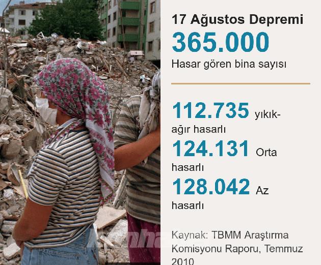DEPREMDE KAÇ KİŞİ HAYATINI KAYBETTİ, NE KADAR BİNA HASAR GÖRDÜ?17 Ağustos Depremi, gerek nüfus yoğunluğu gerekse de ekonomik faaliyet açısından Türkiye'nin en önemli bölgesini etkiledi.