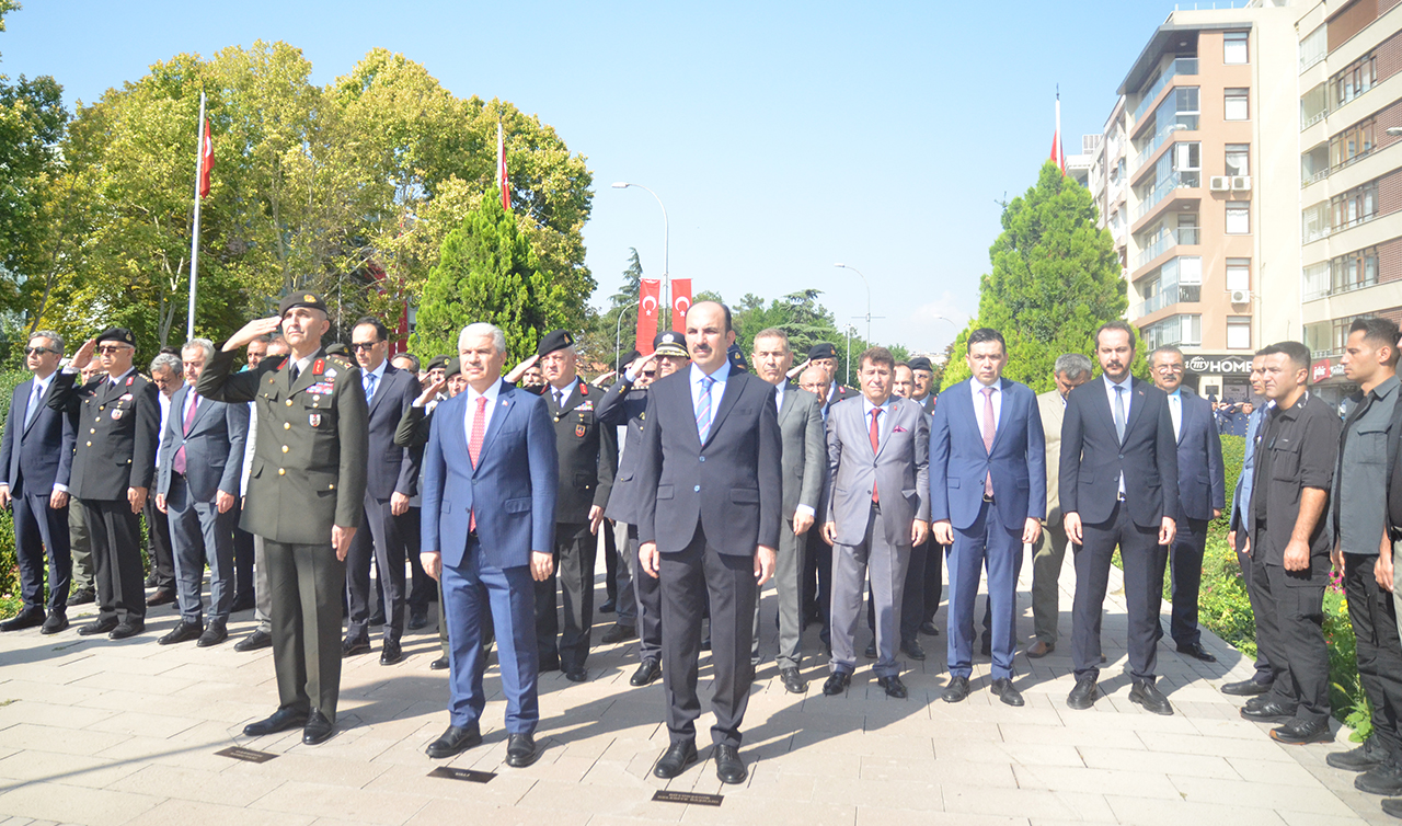 Atatürk Anıtı'na Valilik, Büyükşehir Belediyesi ve Garnizon çelenkleri sunuldu. Saygı duruşunda bulunuldu, İstiklal Marşı okundu.