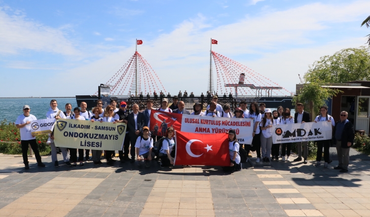 Ondokuzmayıs Dağcılık ve Doğa Sporları Kulübü (OMDAK) üyeleri ile Ondokuz Mayıs Lisesi öğrencileri, Gazi Mustafa Kemal'in Samsun'a ilk adımı attığı yeri temsil eden Tütün İskelesi'nde toplandı.