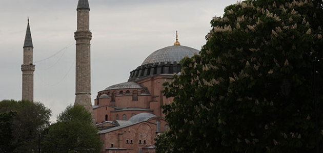 Ayasofya-i Kebir Cami-i Şerifi'nin minareleri, "La İlahe İllallah" yazılı mahyayla süslendi.