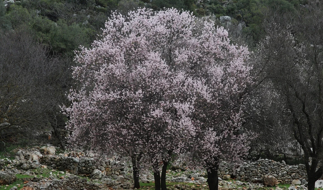 Antalya'nın Kaş ilçesinde mevsim normallerinin üzerinde seyreden hava sıcaklıkları dolayısıyla badem ağaçları erken çiçek açtı.