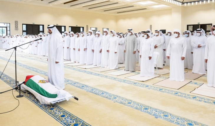 BAE resmi ajansı WAM'da yer alan habere göre, Al Nahyan'ın cenaze namazı Abu Dabi Veliaht Prensi Muhammed bin Zayid Al Nahyan ile Kraliyet ailesinin katılımıyla başkent Abu Dabi'deki Şeyh Sultan bin Zayid el-Evvel Camisi'nde kılındı.