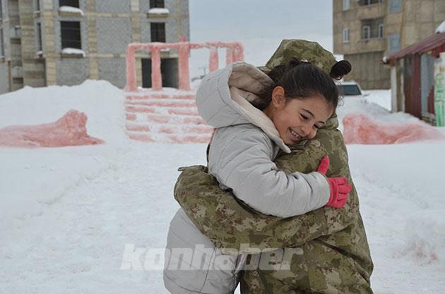 Hira, babasının kendisi için yaptığı 'kardan Anıtkabir' önünde 'Atatürk' şiirini okudu. Karahan ailesiyle bir süre sohbet eden komutanlar, beraberlerinde getirdikleri hediyeleri de verdikten sonra evden ayrıldı.