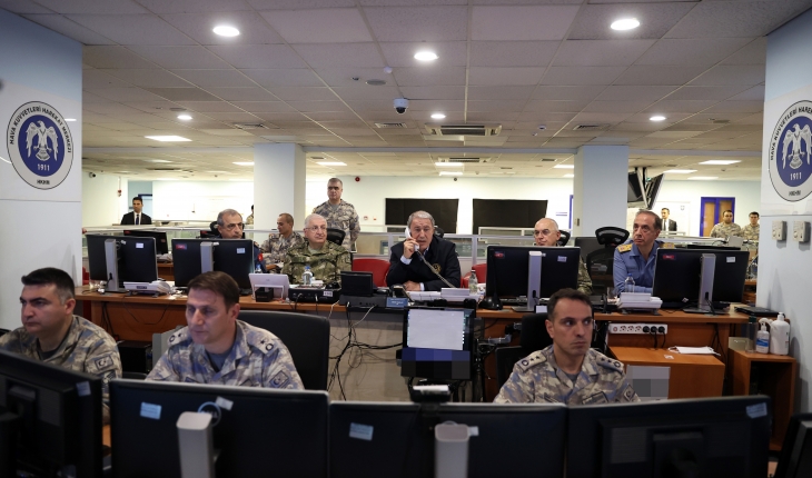 Irak ve Suriye'nin kuzeyindeki terör hedeflerinin tam isabetle vurulduğu Pençe Kılıç Harekatı'nı, Milli Savunma Bakanı Hulusi Akar, beraberindeki Türk Silahlı Kuvvetleri (TSK) komuta kademesi ile Hava Kuvvetleri Harekat Merkezi'nden sevk ve idare etti.