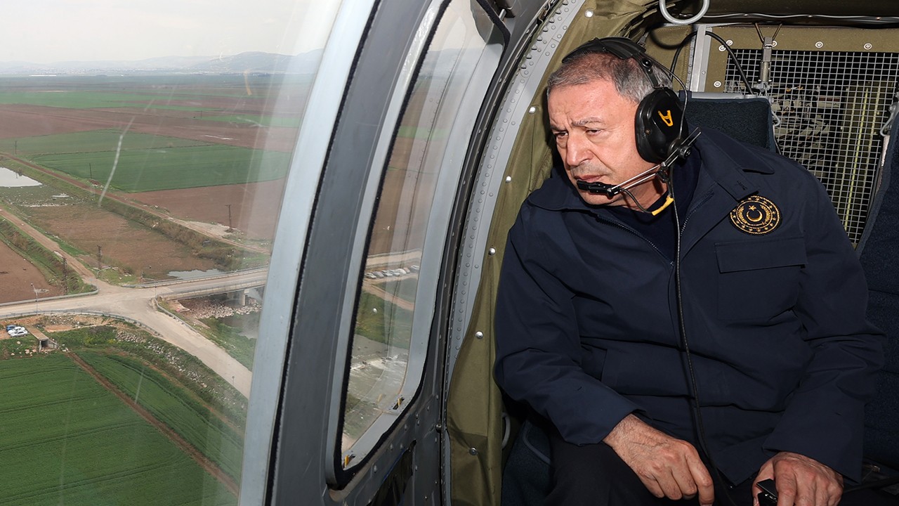 Milli Savunma Bakanı Hulusi Akar, beraberindeki Genelkurmay Başkanı Orgeneral Yaşar Güler ile Kahramanmaraş merkezli depremlerin vurduğu iller arasında bulunan Hatay'da incelemelerini sürdürüyor.