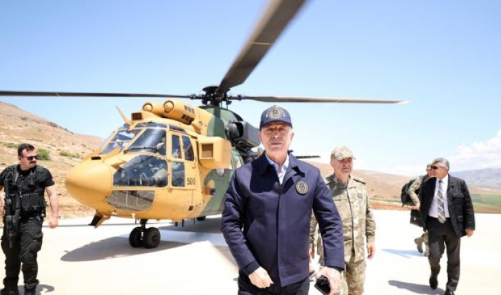 Bakan Akar beraberinde Genelkurmay Başkanı ve Kara Kuvvetleri Komutanı ile hudut hattında inceleme ve denetlemelerde bulunuyor.