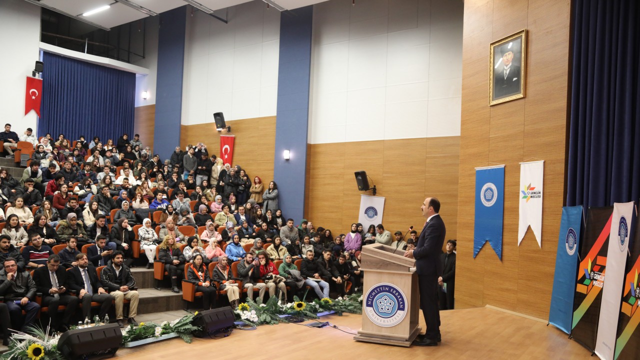 Başkan Altay konuşmasının ardından öğrencilerden gelen soruları da cevapladı.Programa; Necmettin Erbakan Üniversitesi Rektörü Prof. Dr. Cem Zorlu, fakülte dekanları ve öğrenciler katıldı. (Yunus Köroğlu)