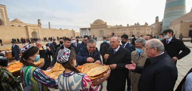 Tarihi Harezm bölgesine ait görsellerin bulunduğu bir sergiyi ziyaret eden Çavuşoğlu, Harezm halıları hakkında bilgi aldı, 47 yıl hanedanlık yapan İkinci Muhammed Rehin (M) Han’ın hayatından küçük bir kesitin temsilen sahnelendiği bir gösteriyi izledi ve Cuma Camii’nde namaz kıldı.