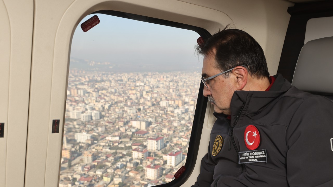 Enerji ve Tabii Kaynaklar Bakanı Fatih Dönmez, "asrın felaketi" olarak nitelenen Kahramanmaraş merkezli depremlerden etkilenen Osmaniye'de havadan incelemelerde bulundu.