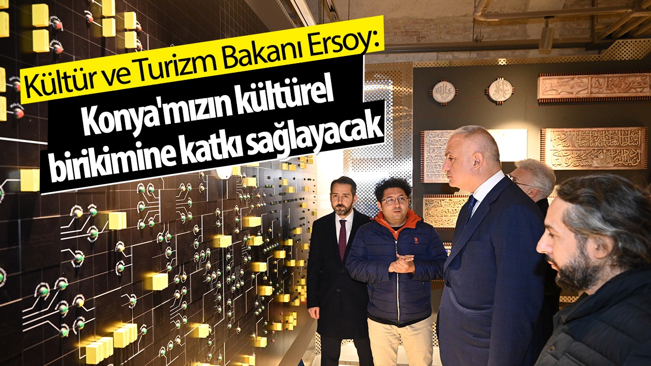 Hazreti Mevlana'nın 750. Vuslat Yıl Dönümü Uluslararası Anma Törenleri kapsamında Konya'ya gelen Bakan Ersoy, Konya Büyükşehir Belediyesi’nin Darü'l-Mülk Projesi kapsamında şehrin kültür ve turizm hayatına kazandırdığı Eski Tekel Binası Depo No: 4’teki çalışmalar hakkında bilgi aldı.