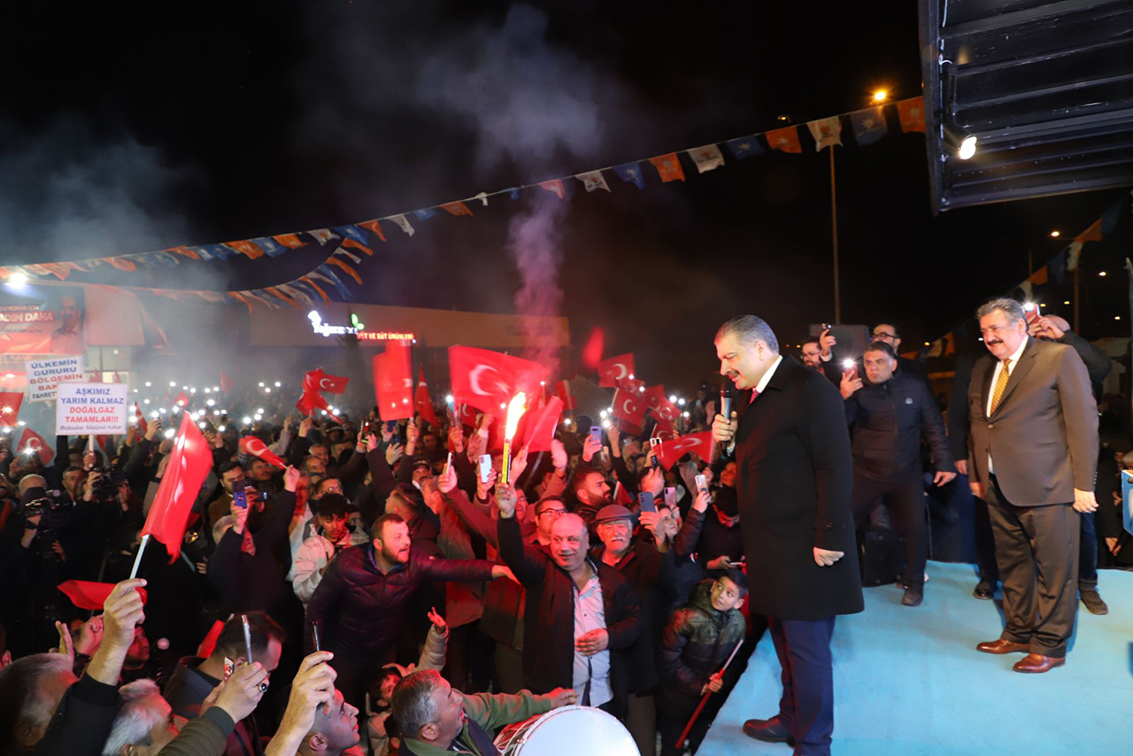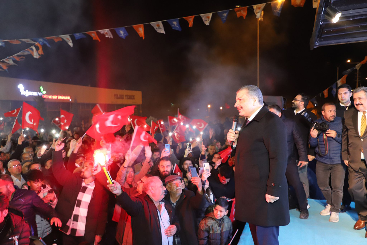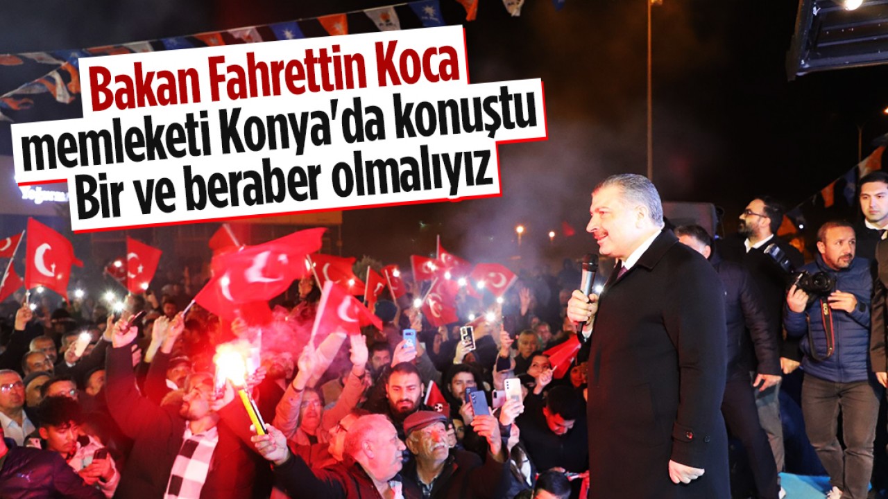 Bakan Koca: Heyecanımızda herhangi bir azalma söz konusu olmaz. Ama etki gücümüzün daha da artması için, hedef birliğinin sağlanması için bir ve beraber olmalıyız. Hem Cihanbeyli'de hem Konya'da İbrahim başkanım için. Önümüzdeki dönemde Cihanbeyli'nin daha hedef birliği noktasında güçlü bir Cihanbeyli olması için, hizmetin daha yoğunlaşması için ve özellikle bir ve beraber olduğumuz iradenin ve istikrarın karar verildiği gün, 31 Mart. Yalnız olmadığınızı bilin. Rabbim sizlere karşı bizi mahcup etmesin."