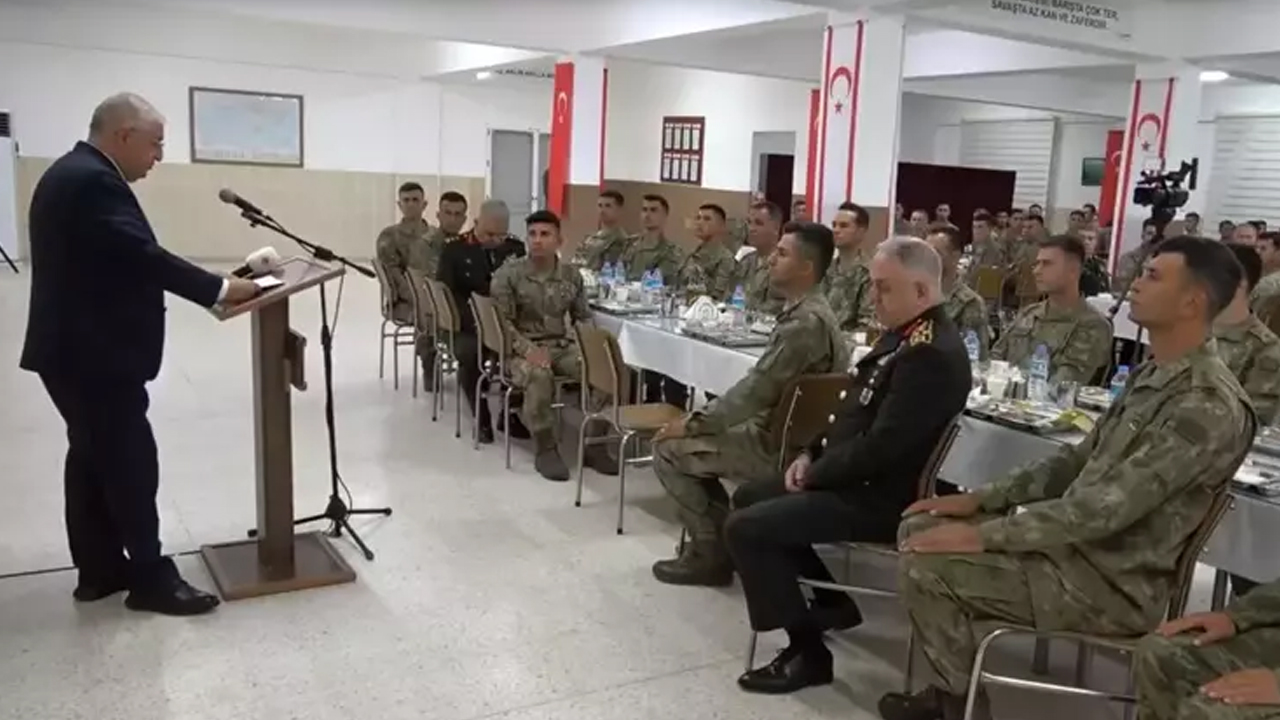 Bakan Güler, kardeş ülke KKTC'de bulunmaktan ve Kıbrıs adasının güvenliğine yönelik önemli bir fonksiyon üstlenen 28'inci Mekanize Piyade Tümen Komutanlığı'nda Mehmetçik ile bir arada olmaktan büyük bir mutluluk duyduğunu belirterek, "Bölgemizde ve dünyada çok boyutlu gelişmelerin yaşandığı; artan risk ve tehditler nedeniyle güvenlik paradigmalarının sürekli değiştiği kritik bir süreçten geçiyoruz. Bu süreçte jeopolitik ehemmiyeti yüksek bir coğrafyada bulunan ülkemizin de tüm bu tehdit ve tehlikelere karşı, daima güçlü ve uyanık bulunması bir zorunluluk haline geliyor. Dolayısıyla Milli Savunma Bakanlığı (MSB) olarak bizler de ülkemizin bekası, asil milletimizin güvenlik ve huzuru için son bir asrın en yoğun ve en etkin faaliyetlerini gerçekleştiriyoruz. Bu kapsamda şanlı ordumuz, yurt içinde ve sınır ötesinde icra edilen operasyonlar ile terörle mücadelede büyük başarılar elde ediyor. Kahraman Mehmetçiklerimiz, son teröristi de etkisiz hale getirme kararlılığıyla mücadelesini büyük bir gayretle sürdürüyor. Operasyonlarımızla eş zamanlı olarak hudutlarımızın emniyetini de en yoğun ve etkili tedbirlerle sağlarken; Mavi ve Gök Vatanımızda hak ve menfaatlerimizi de tereddütsüz ve tavizsiz koruyoruz. Milli meselemiz olan Kıbrıs'ta da Garanti ve İttifak Antlaşmaları kapsamında bulunurken, güvenlik ve barışın korunmasına yönelik faaliyetlerimizi de siz kahraman silah arkadaşlarımın büyük fedakarlıklarıyla başarıyla yerine getiriyoruz" ifadelerini kullandı.