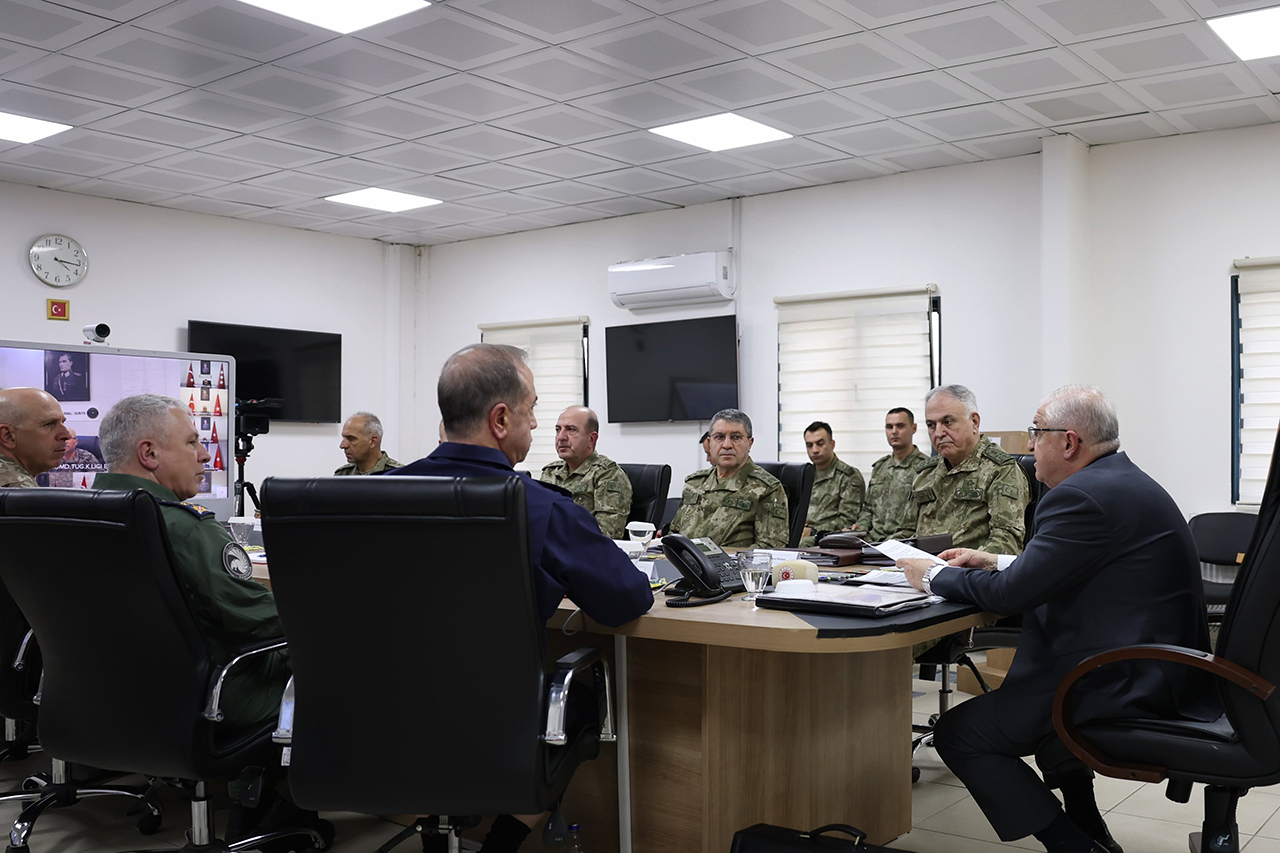 Millî Savunma Bakanı Yaşar Güler, beraberinde Genelkurmay Başkanı Orgeneral Metin Gürak, Deniz Kuvvetleri Komutanı Oramiral Ercüment Tatlıoğlu, Kara Kuvvetleri Komutanı Orgeneral Selçuk Bayraktaroğlu ve Hava Kuvvetleri Komutanı Orgeneral Ziya Cemal Kadıoğlu ile gittiği Kilis/Çıldıroba’da video telekonferans toplantısı gerçekleştirdi.