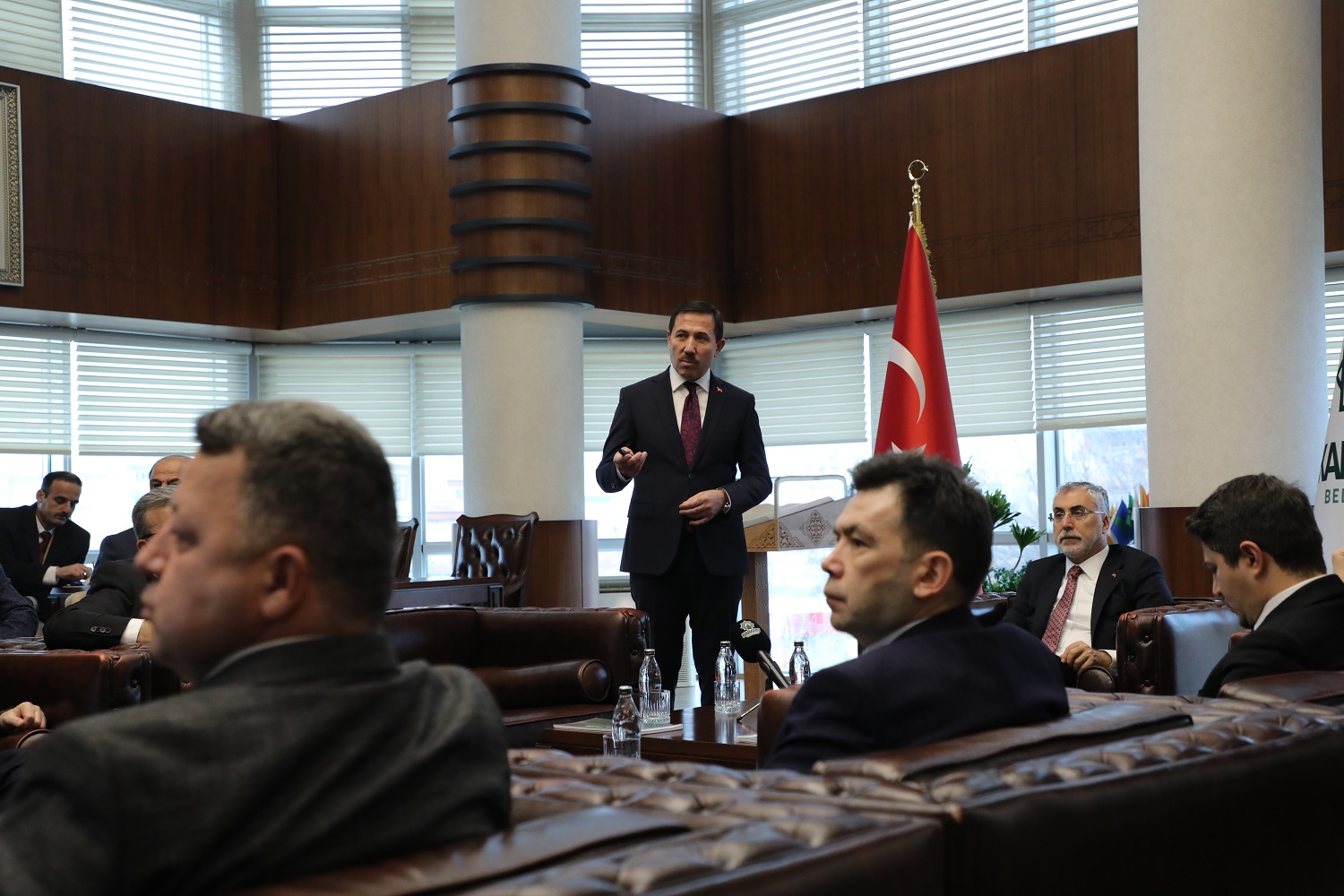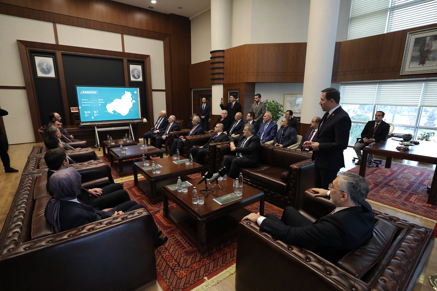 Ekonomi Koordinasyon Kurulu Toplantısı kapsamında Konya’ya gelen Çalışma ve Sosyal Güvenlik Bakanı Vedat Işıkhan, Çalışma ve Sosyal Güvenlik Bakan Yardımcısı Faruk Çelik, Hazine ve Maliye Bakan Yardımcıları Osman Çelik ve İsmail İlhan Hatipoğlu, Karatay Belediyesi’ni ziyaret etti.Ziyarete ayrıca, AK Parti Konya Milletvekilleri Selman Özboyacı ve Meryem Göka, Sosyal Güvenlik Kurumu (SGK) Başkanı Dr. Raci Kaya, Karatay Kaymakamı Cengiz Ayhan, SGK Konya İl Müdürü Murat Mustafa Yavuz, Konya Çalışma ve İş Kurumu (İŞKUR) İl Müdürü Emrah Keleş, AK Parti Karatay İlçe Başkanı Akif Demirci, Yalıhüyük Belediye Başkanı Mehmet Ali Yılmaz, Güneysınır Belediye Başkanı Ahmet Demir, Taşkent Belediye Başkanı Mehmet Acar, Hadim Belediye Başkanı Mehmet Çetiner ve Akören Belediye Başkanı İsmail Arslan da katıldı.