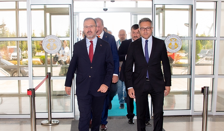Gençlik ve Spor Bakanı Dr. Mehmet Muharrem Kasapoğlu, Selçuk Üniversitesi Rektörü Prof. Dr. Metin Aksoy’u ziyaret etti. Selçuk Üniversitesinin, Türkiye’nin en özel üniversitelerinden biri olduğunu vurgulayan Bakan Kasapoğlu, iş birliği için Rektör Prof. Dr. Aksoy’a teşekkür etti.