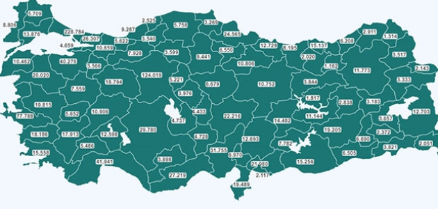 Haritada toplam sayı dakikada bir, illere göre dağılım ise 10 dakikada bir güncelleniyor.