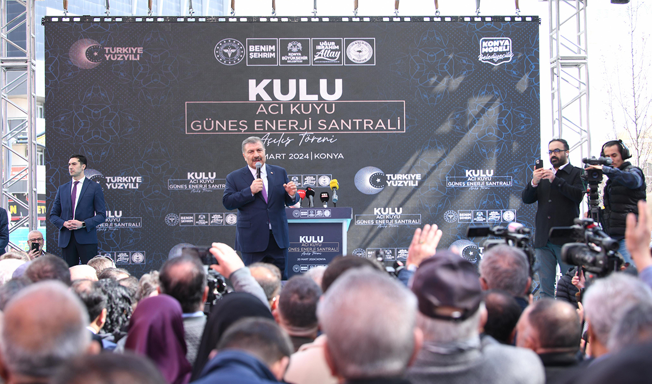 Konya Büyükşehir Belediyesi tarafından Kulu’ya kazandırılan Acıkuyu Güneş Enerji Santrali’nin açılışı Sağlık Bakanı Fahrettin Koca’nın katılımıyla gerçekleştirildi.