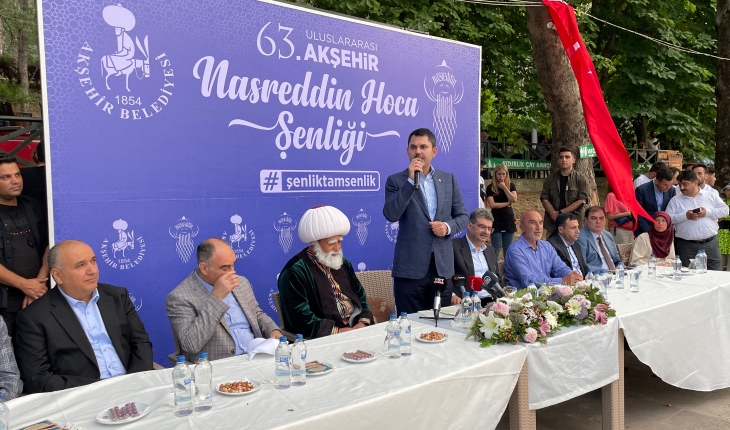 Murat Kurum, 63.'sü düzenlenen şenliklerle Konya'nın tarih, kültür ve hoşgörüsünün tüm dünyaya gösterildiğini belirterek, "Burada tarihi hanlar, hamamlar ve restorasyonu yapılan eserlerimiz var. Bunların 300'ünü tamamladık. Akşehir'in tarihine ve kültürüne kimlik katacak sokakların ihyasını ve inşasını gerçekleştiriyoruz. Emin olun çok az kaldı, yakın zamanda Akşehir, Türkiye'nin ve bölgenin turistik destinasyonlarından biri olacak." diye konuştu.