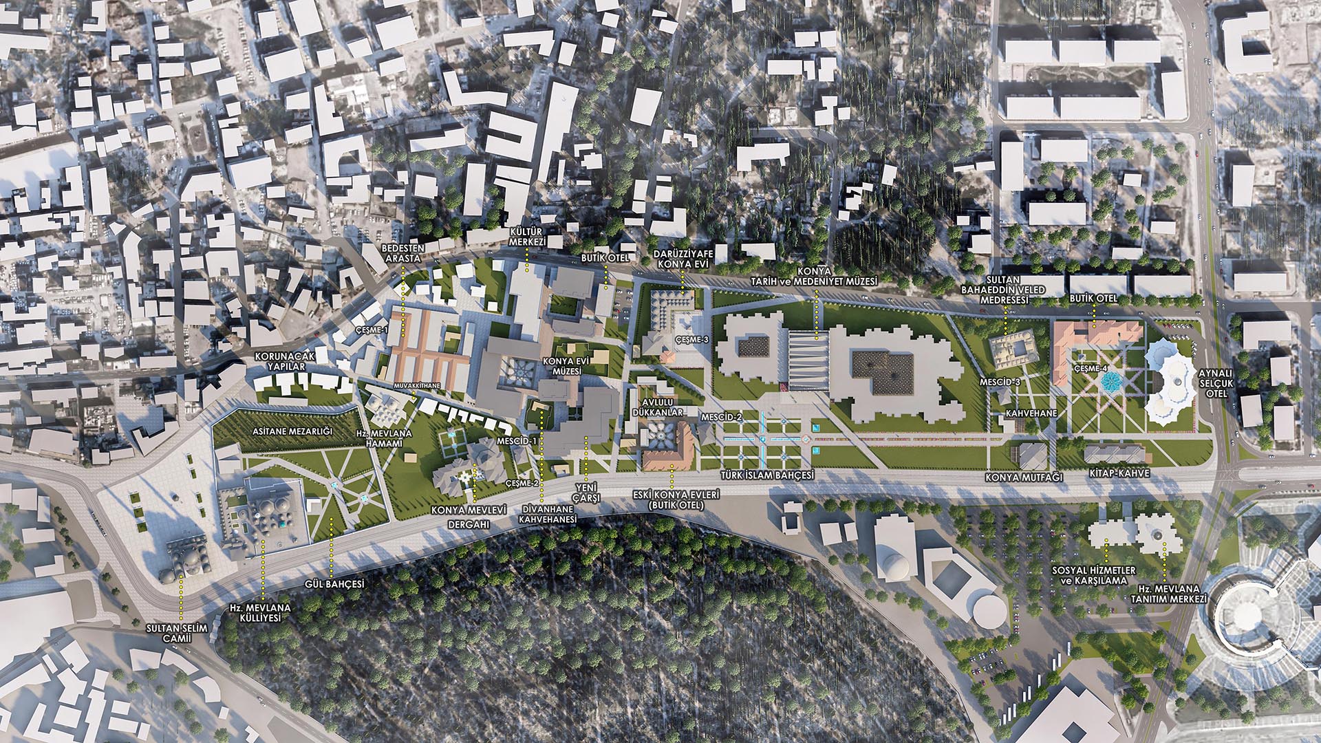 Proje kapsamında, Mevlâna Müzesi, Sosyal Hizmetler ve Karşılama Merkezi gibi önemli yapılar da yer alacaktır. Mevlâna Hamamı, Hamam önü dükkânları, muvakkithane ve İmaret binaları yeniden ihya edilecek ve şehrin tarihi dokusunu koruyacak şekilde restore edilecektir.