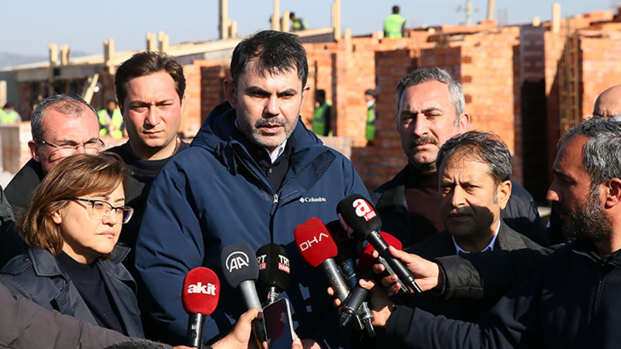 Bakan Kurum, rezerv alanlarda ayrıntılı jeolojik etütlerin yürütüldüğünü ifade ederek, "Bu kapsamda deprem sebebiyle oluşan yeni kırıklar dahil, zemini her türlü ayrıntılarıyla mikro bölgeleme ve ayrıntılı jeolojik etüt raporlarıyla hocalarımızla jeologlarımızla jeofizik mühendislerimizle incelemek suretiyle en doğru, en sağlam zemine göre yapılaşmayı seçerek, radye temel üzerine tünel kalıp sistemiyle yöresel mimariye uygun, zemin artı, 3-4 katı geçmeyecek konutlarımızın inşası sürecini de eş zamanlı yürüteceğiz." diye konuştu.