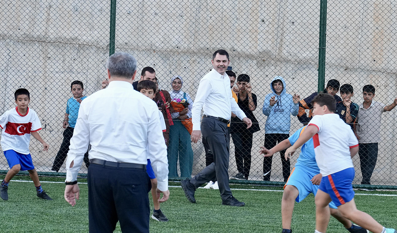 Çevre, Şehircilik ve İklim Değişikliği Bakanı Murat Kurum, Adıyaman ziyaretinde halı saha sözünü yerine getirdiği çocuklarla futbol oynadı.