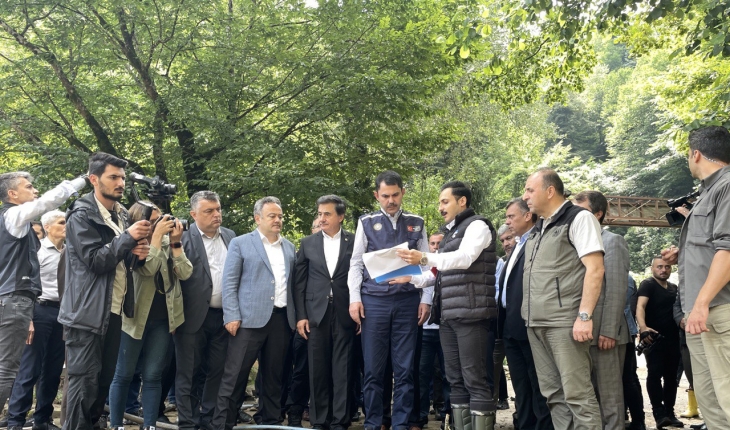 Selin yaşandığı Karabük'ün Yenice ilçesini ziyaret eden Bakan Kurum, Tır köyünde yıkılan evleri ve bir köprüyü inceledi.