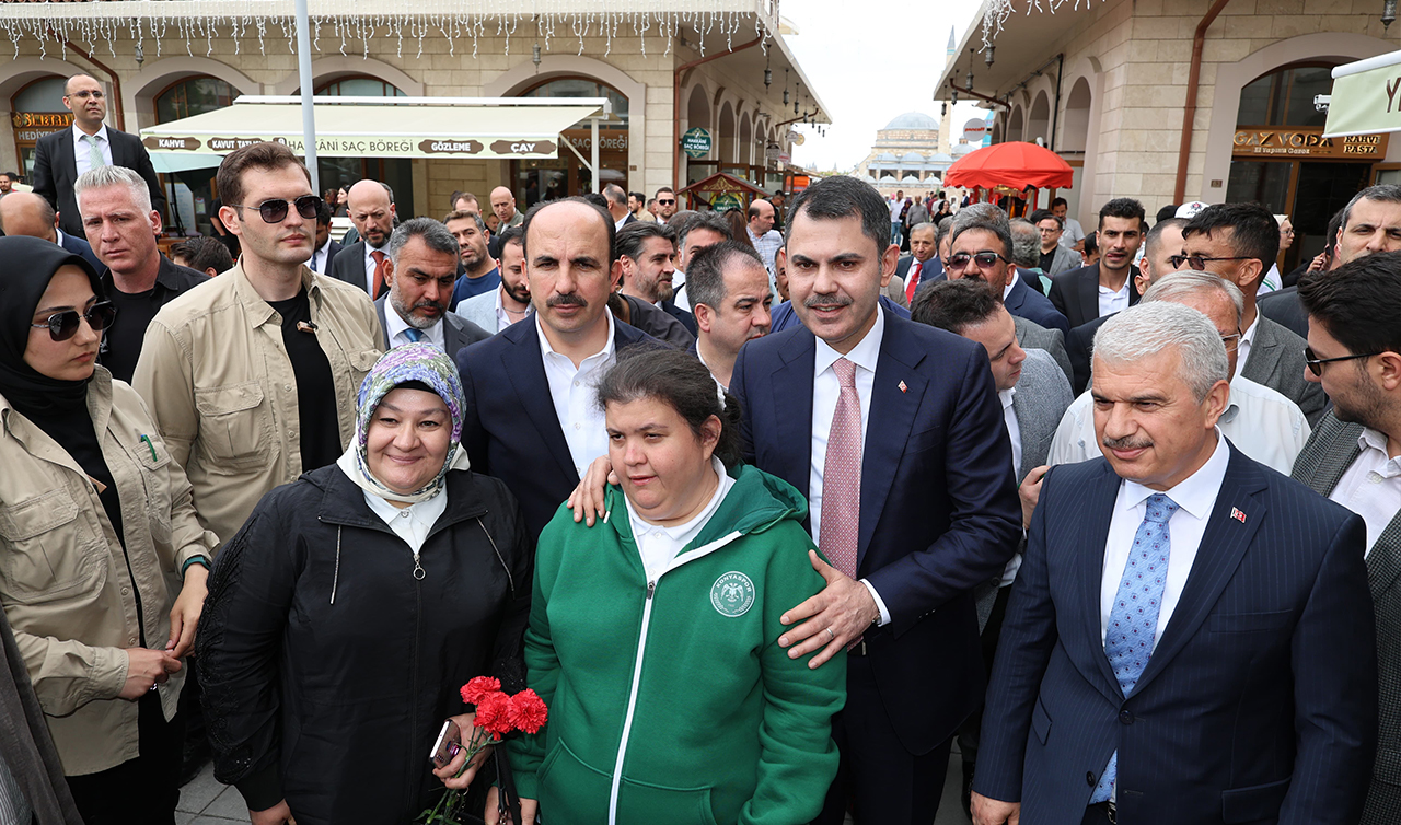 Konya programı kapsamında; AK Parti Konya İl Başkanlığı’nı ziyaret eden ve Millet Kütüphanesi’nde gençlerle buluşan Bakan Kurum; ayrıca Konya Valisi İbrahim Akın, AK Parti Konya Milletvekilleri, Konya Büyükşehir Belediye Başkanı Uğur İbrahim Altay, AK Parti Konya İl Başkanı Fatih Özgökçen ve MHP Konya İl Başkanı Remzi Karaarslan ile birlikte Türbeönü Çarşılarında esnaflara hayırlı işler diledi.