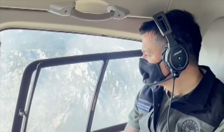 Yangın yönetim merkezinde söndürme çalışmalarını koordine eden Pakdemirli, yanan bölgede havadan incelemede bulundu.