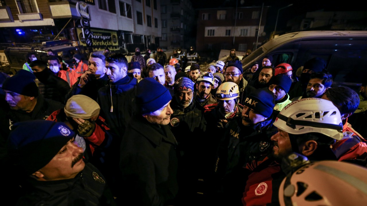 Soylu, Ekinci Mahallesi Buket Apartmanı önüne gelerek arama kurtarma çalışması gerçekleştiren ekipleri ziyaret etti.