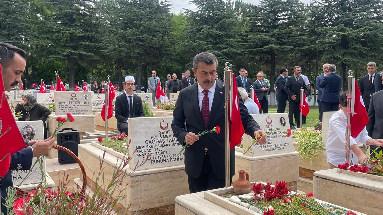 Milli Eğitim Bakanı Yusuf Tekin, Karşıyaka Mezarlığı'nda 15 Temmuz Şehitliği'ni ziyaret ederek şehitlerin kabirlerine karanfil bıraktı.