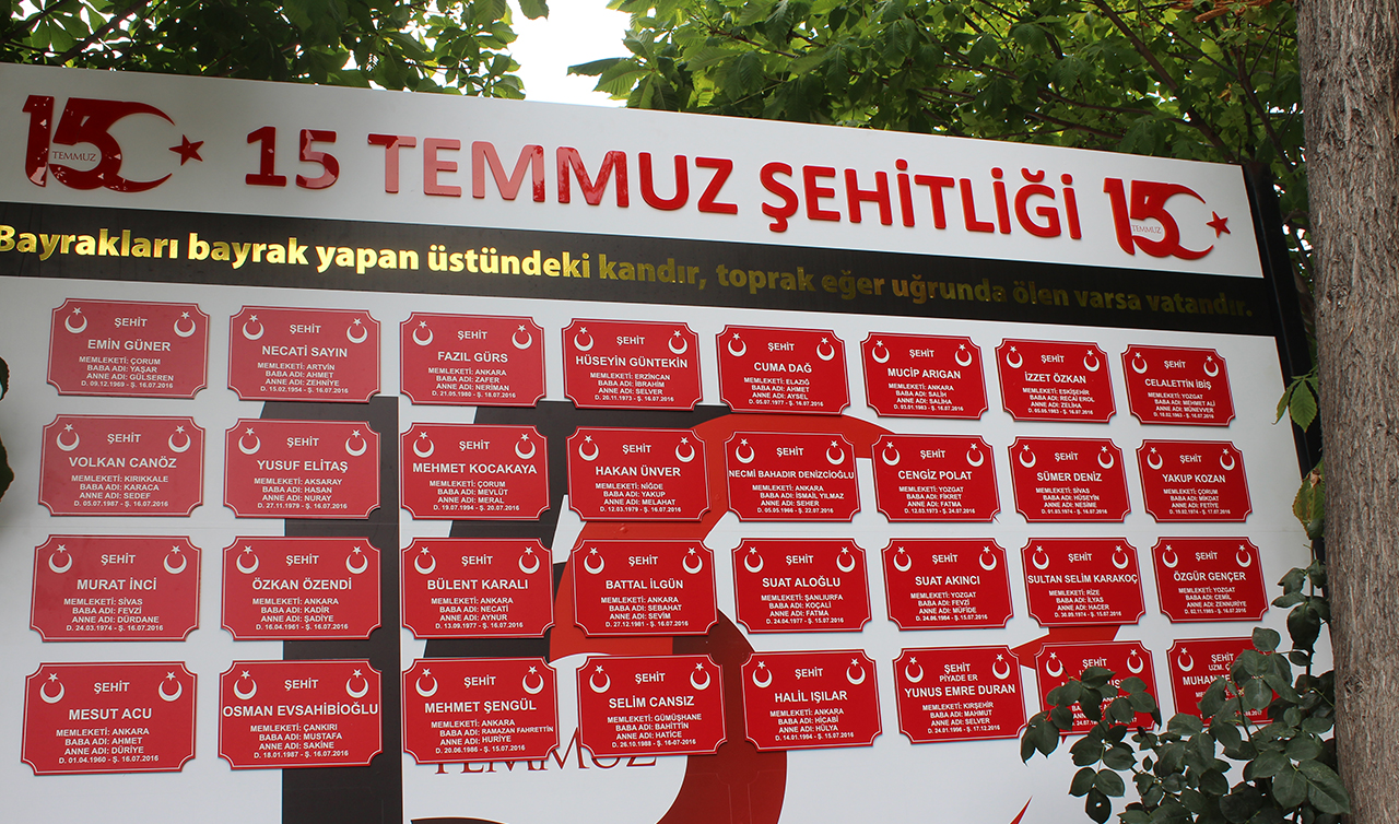 Tekin, daha sonra darbe girişiminde şehit olan polislerin kabirlerinin bulunduğu şehitliği ziyaret etti. Burada da Kur'an-ı Kerim okunup, dua edildi. Tekin, polis şehitlerinin ailelerine de başsağlığı dileyerek, kabirlerine karanfil bıraktı. Tekin, 15 Temmuz'u anmak için şehitliğe gelen vatandaşlarla da sohbet etti. Tekin, ailesiyle şehitlik ziyaretinde bulunan 5 yaşındaki Ömer Halis'e de oyuncak hediye etti.