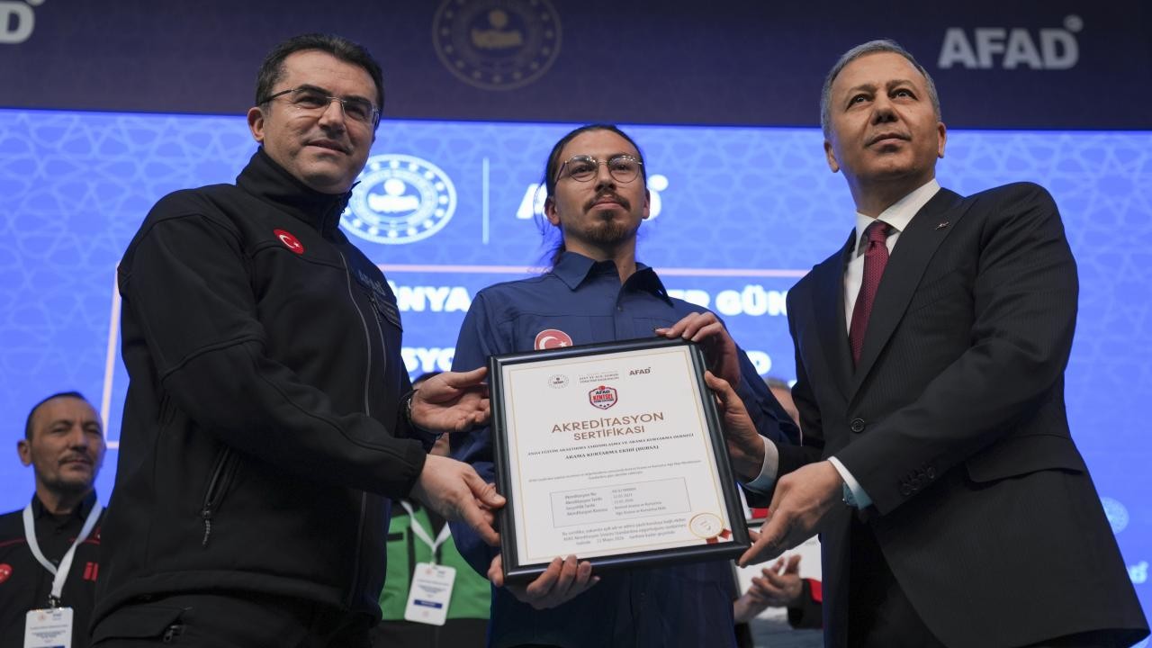 Cumhurbaşkanı Recep Tayyip Erdoğan liderliğinde Türkiye'nin afet yönetiminde ve dayanışma ruhunun kurumsallaşmasında büyük adımlar attığına işaret eden Yerlikaya, 2009 yılında AFAD'ın kuruluşunun afetlere hazırlıkta bir milat olduğunu söyledi. Türkiye Afet Müdahale Planı çerçevesinde AFAD Akreditasyon Sistemi ile sivil toplum kuruluşları, kamu-özel sektör kuruluşları ve gönüllü bireylerin afet sahasında etkin görev almasını teşvik ettiklerini anlatan Yerlikaya, "Bugün arma takacak ve akreditasyon sertifikası alacak 257 ekip ve 7 bin 972 üye ile toplamda 300 ekip ve 9 bin 101 üyeye ulaştık." dedi.