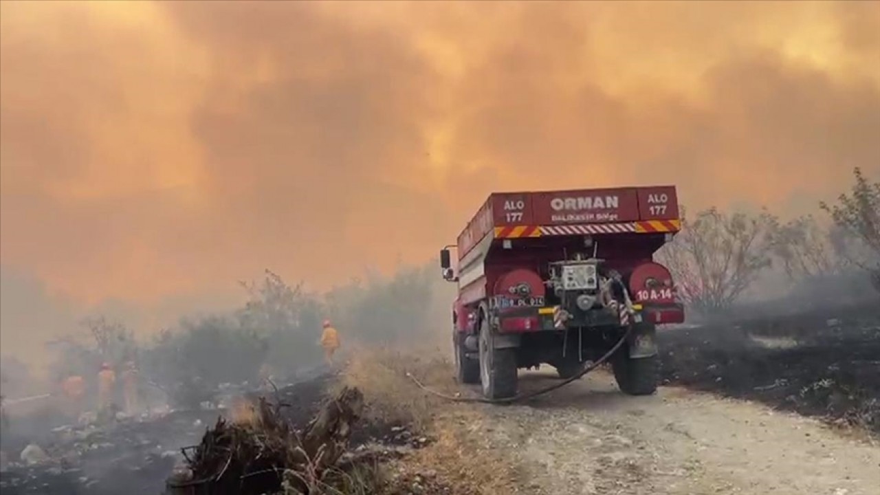 Balıkesir'in Altıeylül ilçesinde tarım arazisinde başlayıp ormana sıçrayan yangına havadan ve karadan müdahale başlatıldı.