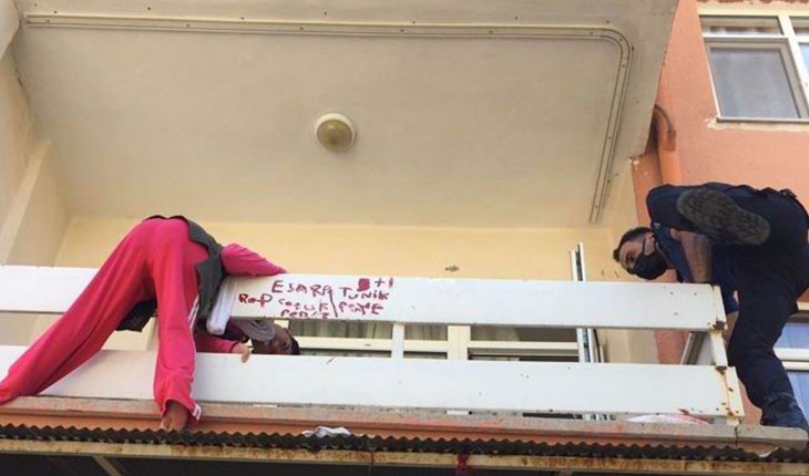 İsmi açıklanmayan engelli gencin balkon korkuluklarına tutunduğunu gören polis memuru, alt kattan tırmanarak balkona çıktı. Polis tarafından kurtarılan engelli genç daha sonra içeriye alındı.
