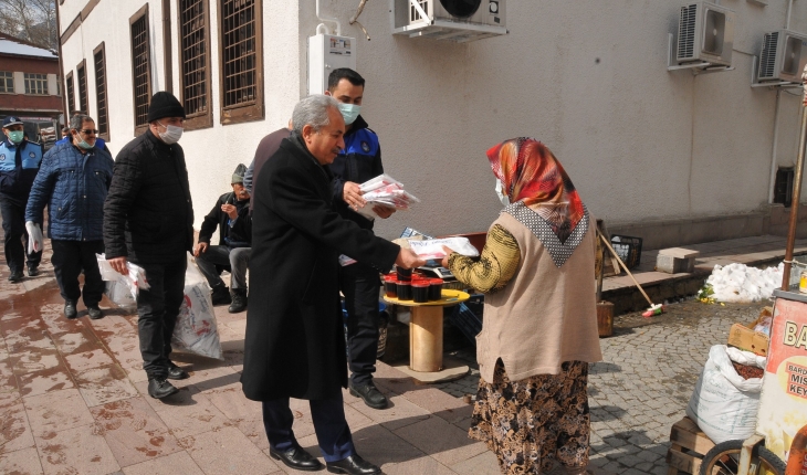 Başkan Akkaya pazarın ardından Müze Meydanı ve İnönü Kavşağında hanımların yolda yürüyen hanımların kadınlar gününü kutlayıp, hediye verdi.