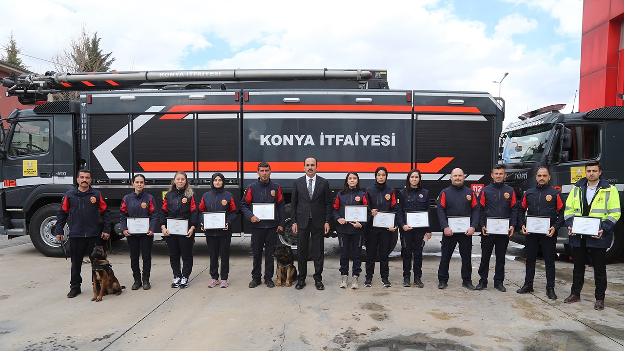 Konya Büyükşehir Belediye Başkanı Uğur İbrahim Altay, deprem sonrası Hatay’da görev yapan ve enkazdan 168 vatandaşın kurtulmasına vesile olan Konya İtfaiyesi personeline teşekkür belgelerini takdim etti. Başkan Altay ayrıca ortaya çıkan başarının kurumsal bir başarı olduğuna dikkat çekerek “Bu hep birlikte ortaya çıkan bir başarıdır. Bir Konya başarısıdır" dedi.