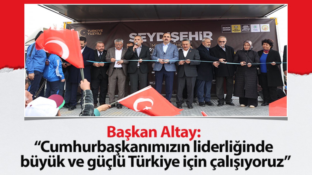 Bütün bu işleri Cumhurbaşkanı Recep Tayyip Erdoğan’ın liderliğinde hayata geçirdiklerinin altını çizen Başkan Altay, “Cumhurbaşkanımızın liderliğinde ülkemizi büyük ve güçlü hale getirmek için gece gündüz demeden çalışıyoruz, gayret ediyoruz. Belediye olarak 2018’den bugüne kadar Seydişehir’imize 500 milyondan fazla yatırım yaptık. Tabi bu demek değil ki her iş bitti. Ama şuna inanın her yıl bir eksiği tamamlıyoruz. Gün geçtikçe Seydişehir’imiz merkez standartlarına yaklaşıyor, Büyükşehir’in varlığı çok daha güçlü hissediliyor. İnşallah Belediye Başkanımızla birlikte ilçe başkanımızla birlikte sizlere hizmet etmeye çalışacağız. Bizler, büyük ve güçlü bir Türkiye hayal ediyoruz” cümlelerini kullandı.