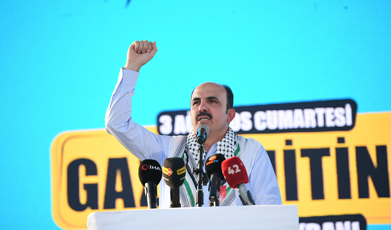 Konya Büyükşehir Belediye Başkanı Uğur İbrahim Altay, Özgürlük Tufanı Zaferine Kadar Gazze için Meydanlara Gazze Mitingi"nde konuştu. Başkan Altay, “Kana doymayan İsrail, Haniye’yi şehit ederek Filistin’i haklı davasında durduracağını sanıyor. Cumhurbaşkanımız Recep Tayyip Erdoğan’a dil uzatarak Türkiye’yi sindireceğini sanıyor. Bilmiyor ki; ne kadar öldürürseniz öldürün, Filistin halkının yürüyüşünü asla durduramayacaksınız” dedi.