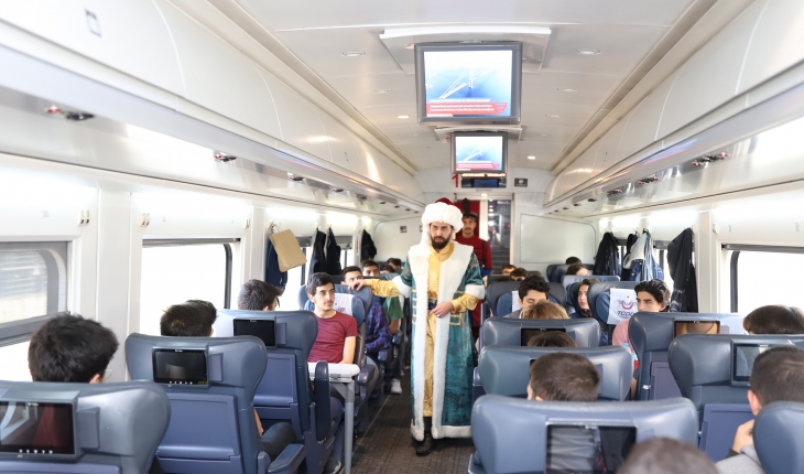 Sabah erken saatlerde rehberler eşliğinde Konya’dan Yüksek Hızlı Tren’e binen öğrencilere yolculuk sırasında tarihi karakterlerin canlandırıldığı tiyatro gösterileri sunuluyor.