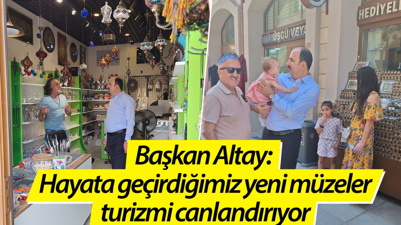 Konya Büyükşehir Belediye Başkanı Uğur İbrahim Altay, Mevlana Türbesi çevresindeki esnafları ziyaret ederek, şehre ziyarete gelen misafirler ve Konyalılarla selamlaştı. Başkan Altay, “Turizm alanında yaptığımız çalışmalar ve hayata geçirdiğimiz yeni müzeler şehir turizmini canlandırıyor. Turizmle beraber istihdamı ve üretimi artıyor, ekonomimize katma değer sağlıyoruz” dedi.