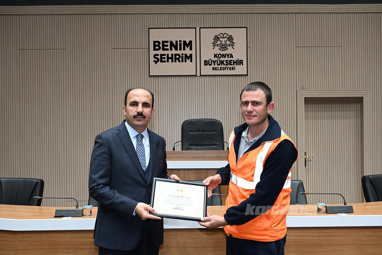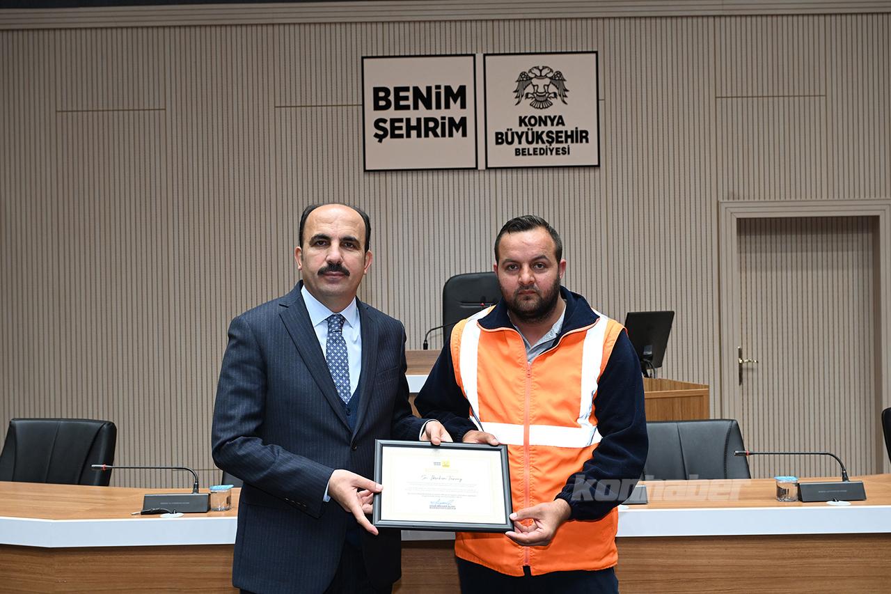 Konya Büyükşehir Belediye Başkanı Uğur İbrahim, Hatay’da görev alan Büyükşehir Belediyesi Fen İşleri, Yapı Kontrol ve Ulaşım dairelerine bağlı personellerle bir araya gelerek özverili çalışmalarından dolayı teşekkür belgesi takdim etti.