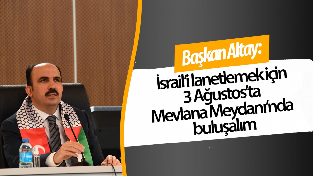 Şehit İsmail Heniyye’nin geçtiğimiz gün, 3 Ağustos’ta tüm İslam ülkelerini Gazze’de yaşanan soykırıma tepki göstermeye ve İsrail hapishanelerinde esir tutulan Filistinlilere destek olmaya çağırması üzerine tüm dünyada milyonlarca vicdan sahibinin meydanlara ineceğini kaydeden Başkan Altay, “Tüm Konyalı hemşehrilerimi 3 Ağustos’ta Gazze’deki katliamlara karşı en yüksek tepkiyi vermeye davet ediyorum. 3 Ağustos Cumartesi günü saat 17.30’da Konya Sivil Toplum Kuruluşları Platformu tarafından Mevlana Meydanı’nda düzenlenecek programda buluşalım” ifadelerini kullandı.(Yunus Köroğlu)