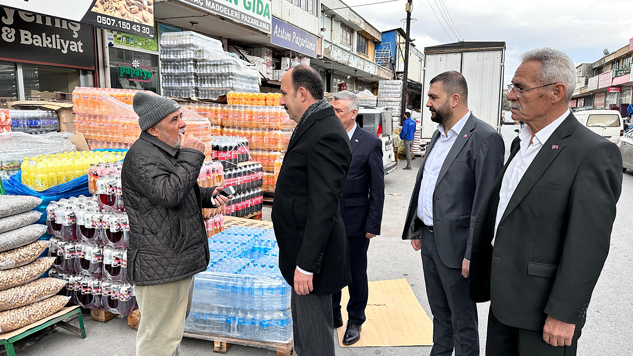 Daha sonra AK Parti ve MHP Konya İl Yönetim Kurulu üyelerinin de katılımıyla Gıda Toptancılar Sitesi’ni, ardından da Hazım Uluşahin ve Yapıcı İş Merkezlerindeki esnafları ziyaret ederek kolaylıklar dileyen Başkan Altay, alışveriş yapan Konyalılarla da sohbet etti.
