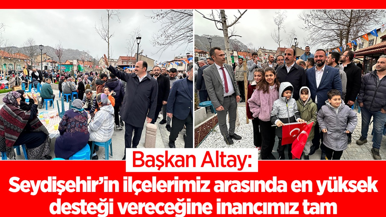 Başkan Altay, Seydişehirlilerden gelen güzel tepkilerden dolayı çok mutlu olduklarını belirterek, “Meydan gösteriyor ki Seydişehir kararını vermiş. Seydişehir, Cumhur İttifakı’ndan yana, reyini meydanda gösteriyor. Allah hepinizden razı olsun” değerlendirmesinde bulundu.