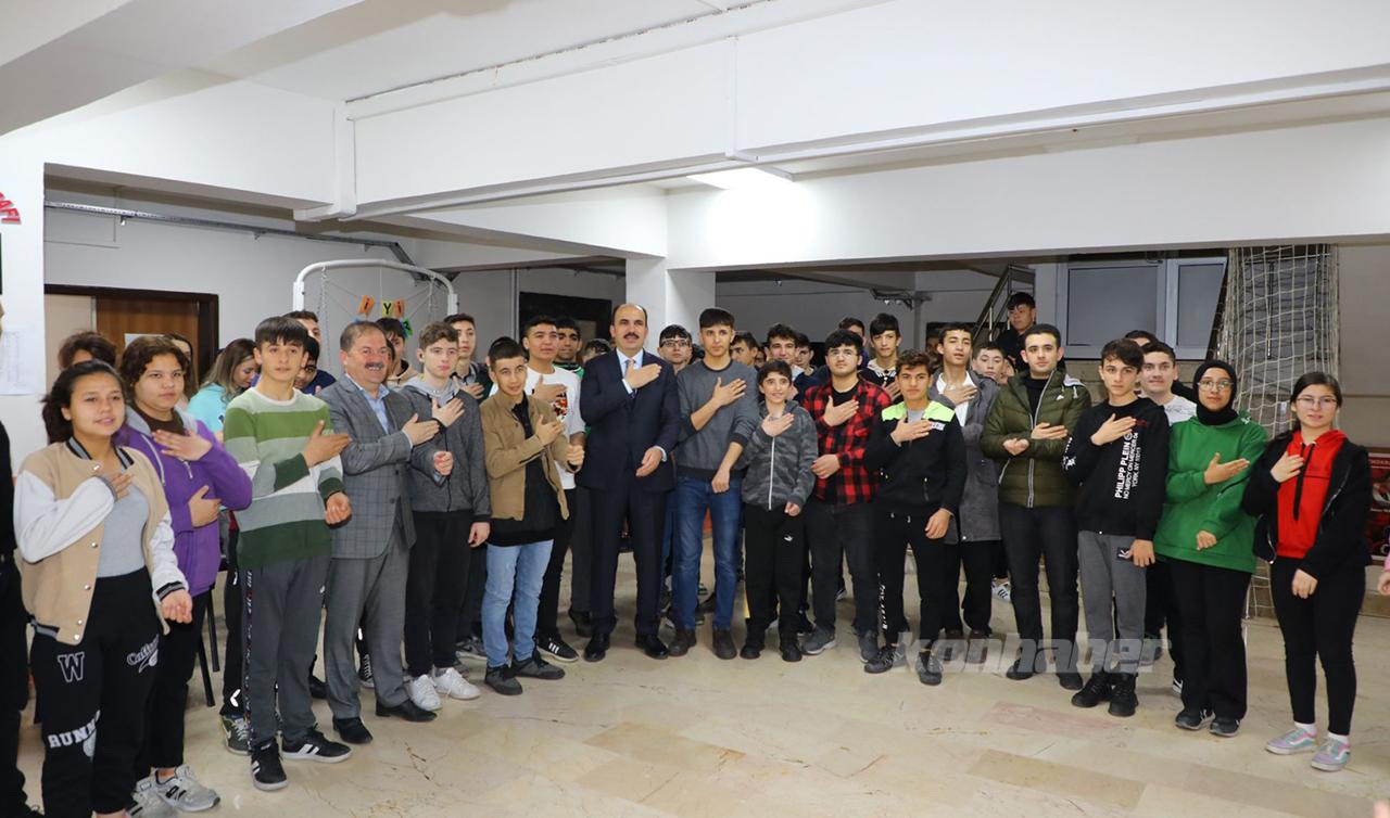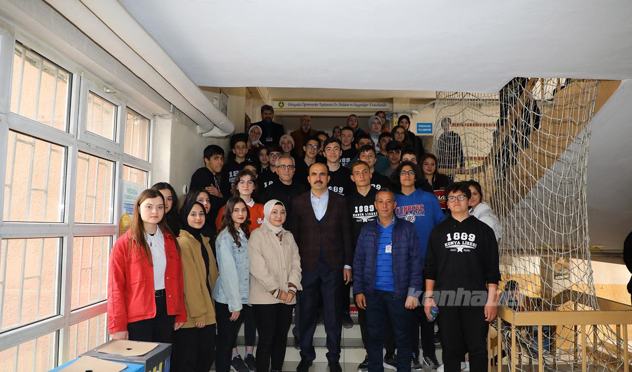 Konya Büyükşehir Belediye Başkanı Uğur İbrahim Altay, 134 yıldır hizmet veren Konya Lisesi bahçesinde depremden önce başlayan ve yapımı devam eden konferans ve spor salonu inşaatını inceleyerek, hem Konya Lisesi’nde hem de Adnan Akgül Özel Eğitim Meslek Lisesi’nde öğrencilerle buluştu.