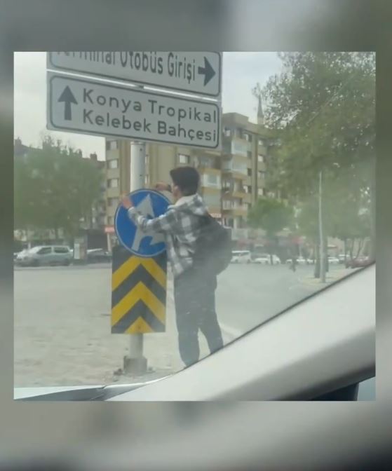 Konya Otogar kavşağındaki önemli yerleri gösteren güzergah tabelasının düşmesine kayıtsız kalmayarak uzun uğraşlar sonucu tabelayı düzelten 17 yaşındaki Aselsan Konya Mesleki ve Teknik Anadolu Lisesi öğrencisi Yusuf Dağtaş’ın, bir vatandaş tarafından kayda alınan görüntüleri sosyal medyada büyük beğeni topladı.